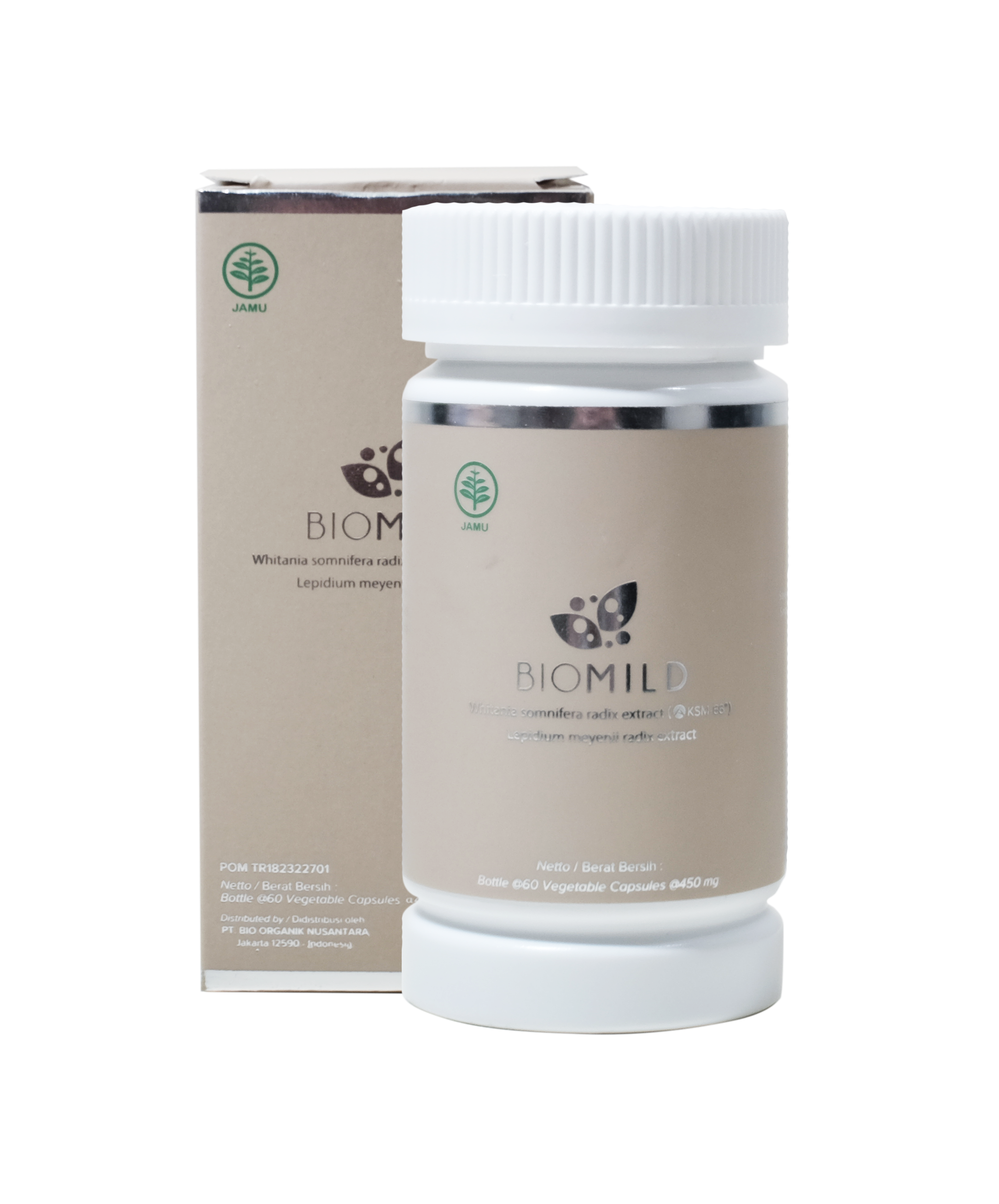 Produk kesehatan dalam bentuk kapsul dengan dua bahan aktif utama, ekstrak Ashwagandha dan akar Maca. Dikemas dalam kapsul berbasis sayuran, Bio Mild aman bagi pria maupun wanita. Bio Mild Kapsul bermanfaat untuk mengatasi berbagai masalah yang berkaitan dengan kesehatan seksual, obesitas, dan stres.